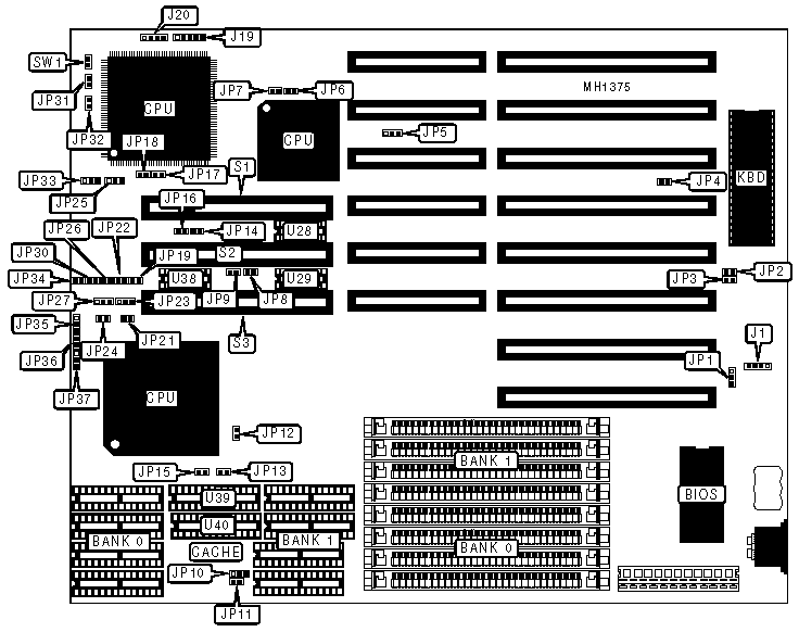 Note:VESA Local bus slot S1 should only be used for a VGA video card. |